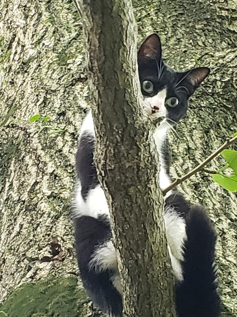 木の下から声をかけたが 尻尾を膨らませて 軽く唸っている
